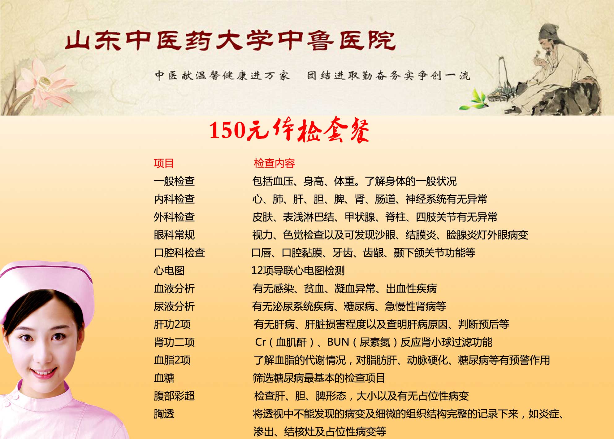 中鲁医院体检中心150元体检套餐
