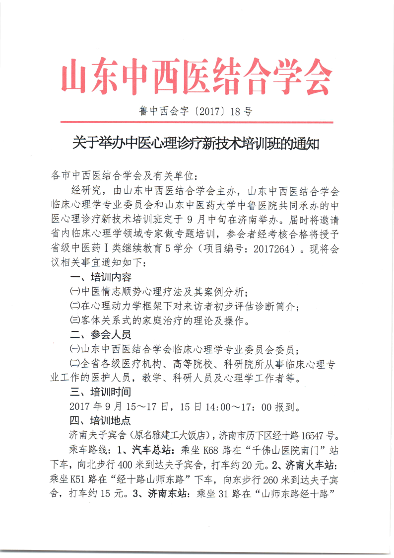 关于举办中医心里诊疗新技术培训班的通知